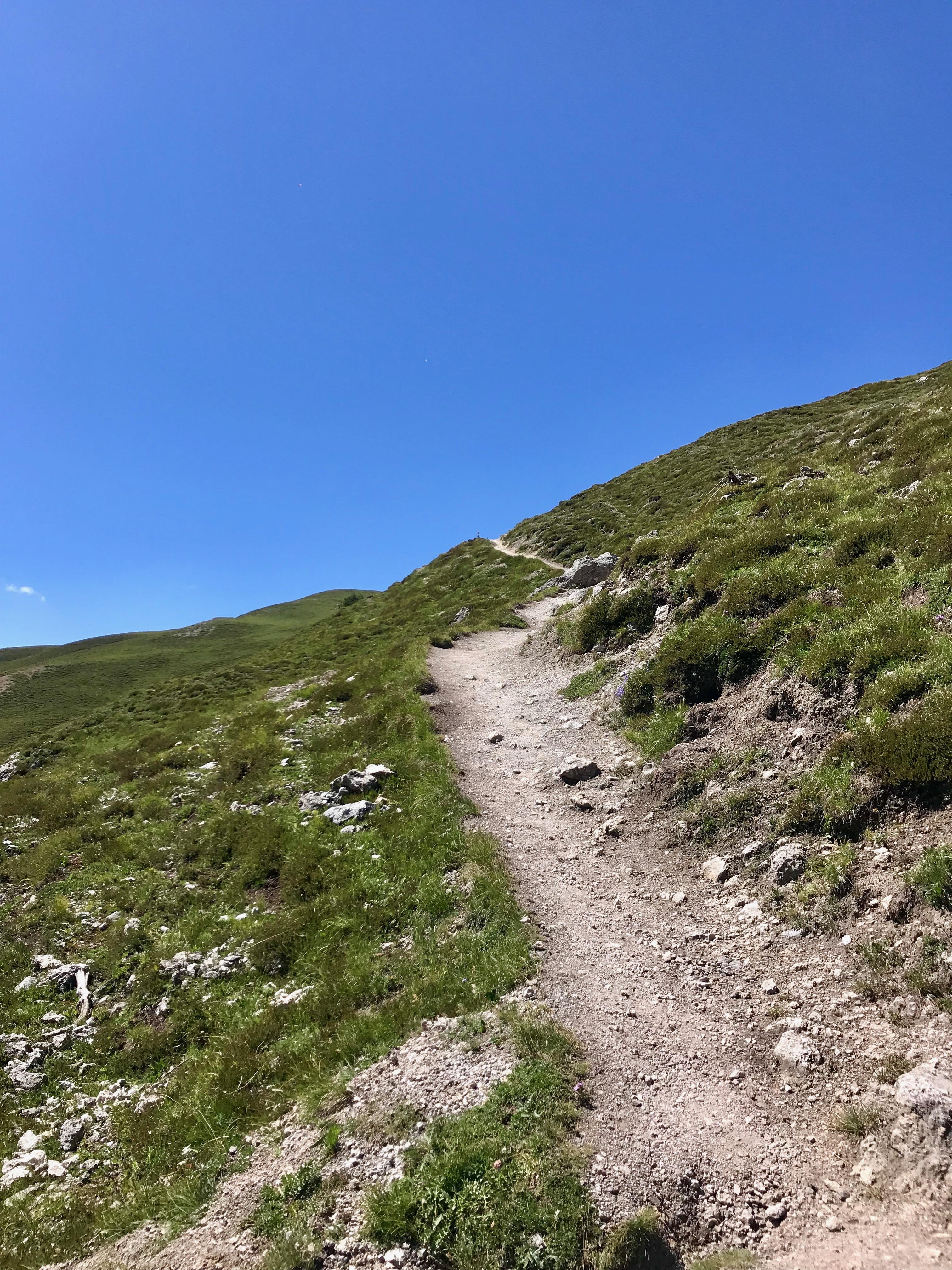 Nun folgt der zweite Teil des Aufstiegs und die Aussicht wird immer besser. Oben angekommen, kann man auf dem Rastplatz das herrliche Panorama und die wunderschöne Gegend geniesse. Auch kann man Bergblumen bewundern und manchmal Tiere beobachten.
