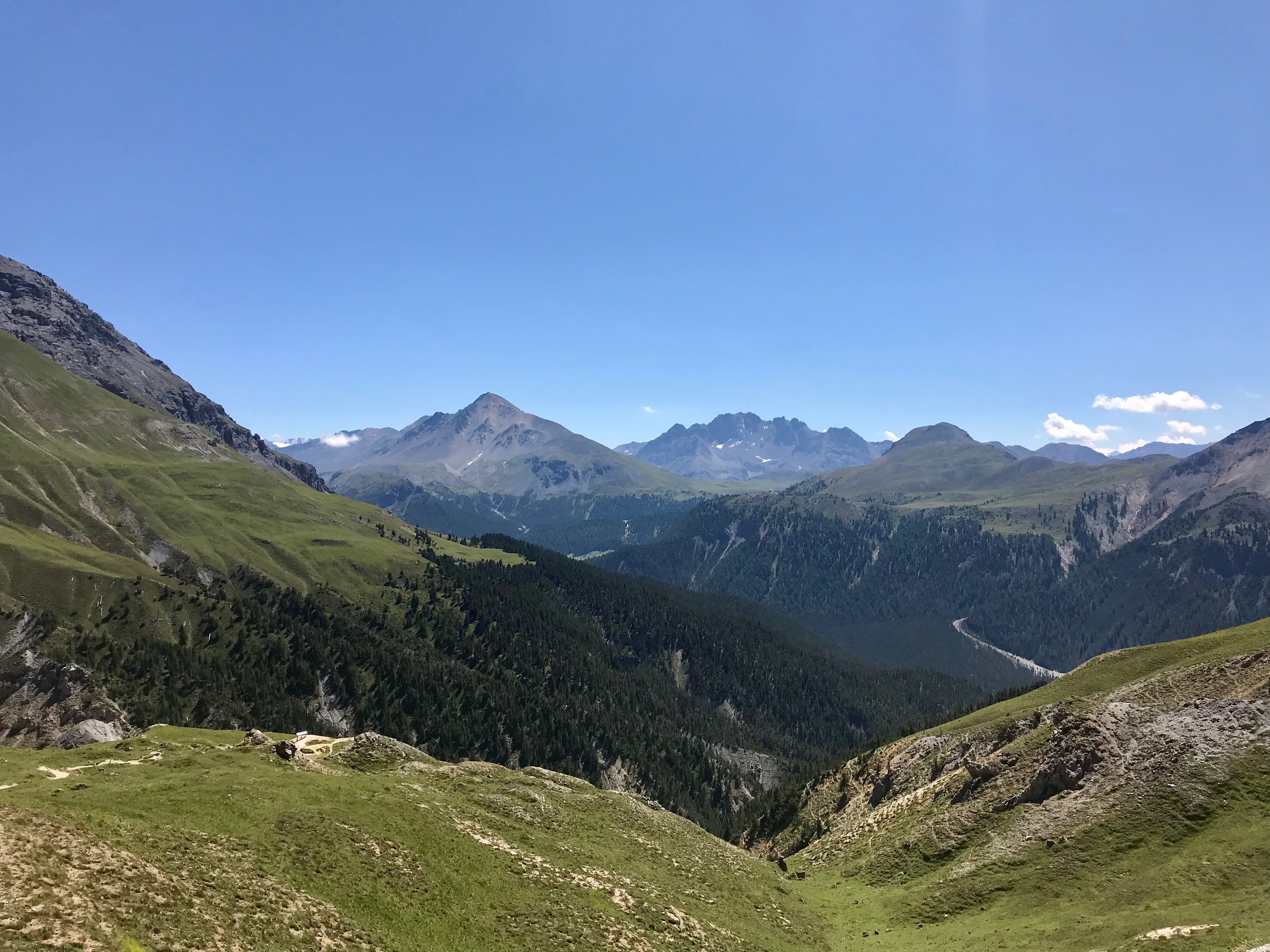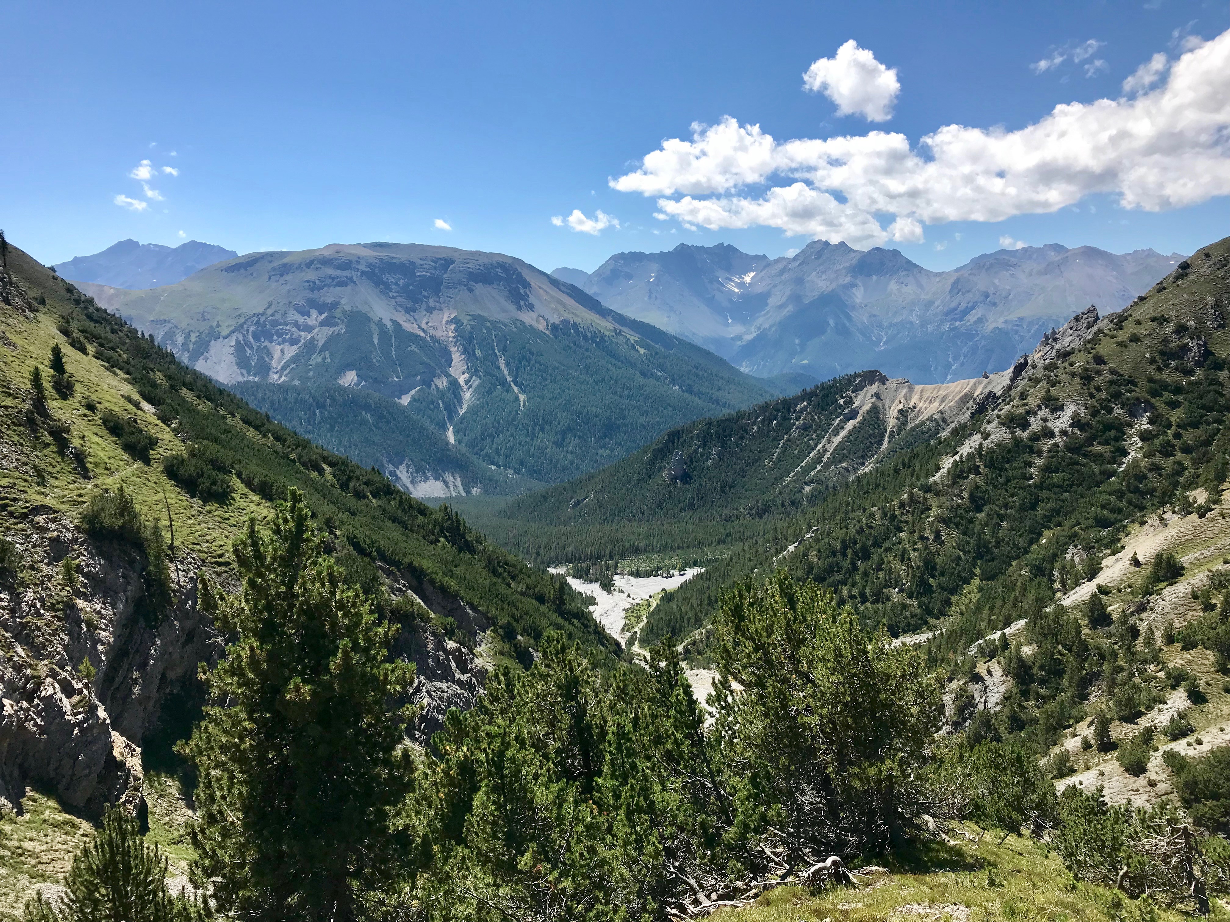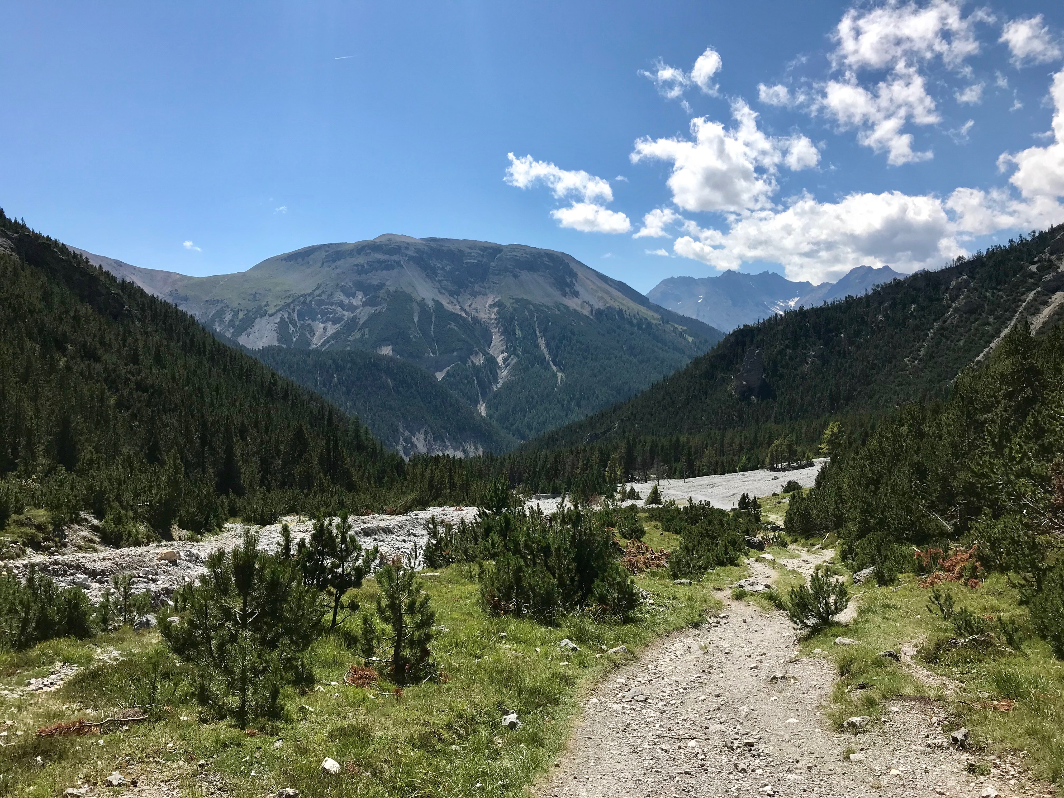 Nun führt der Weg hinunter ins Val dal Botsch und entlang des Baches zurück zur Passstrasse. Dabei kommt man an eindrucksvollen Felsformationen vorbei. An der Passstrasse angelangt, kann man zurück zum Parkplatz P8 wandern, oder weiter nach Il Fuorn, wo sich ebenfalls eine Postautohaltestelle befindet.