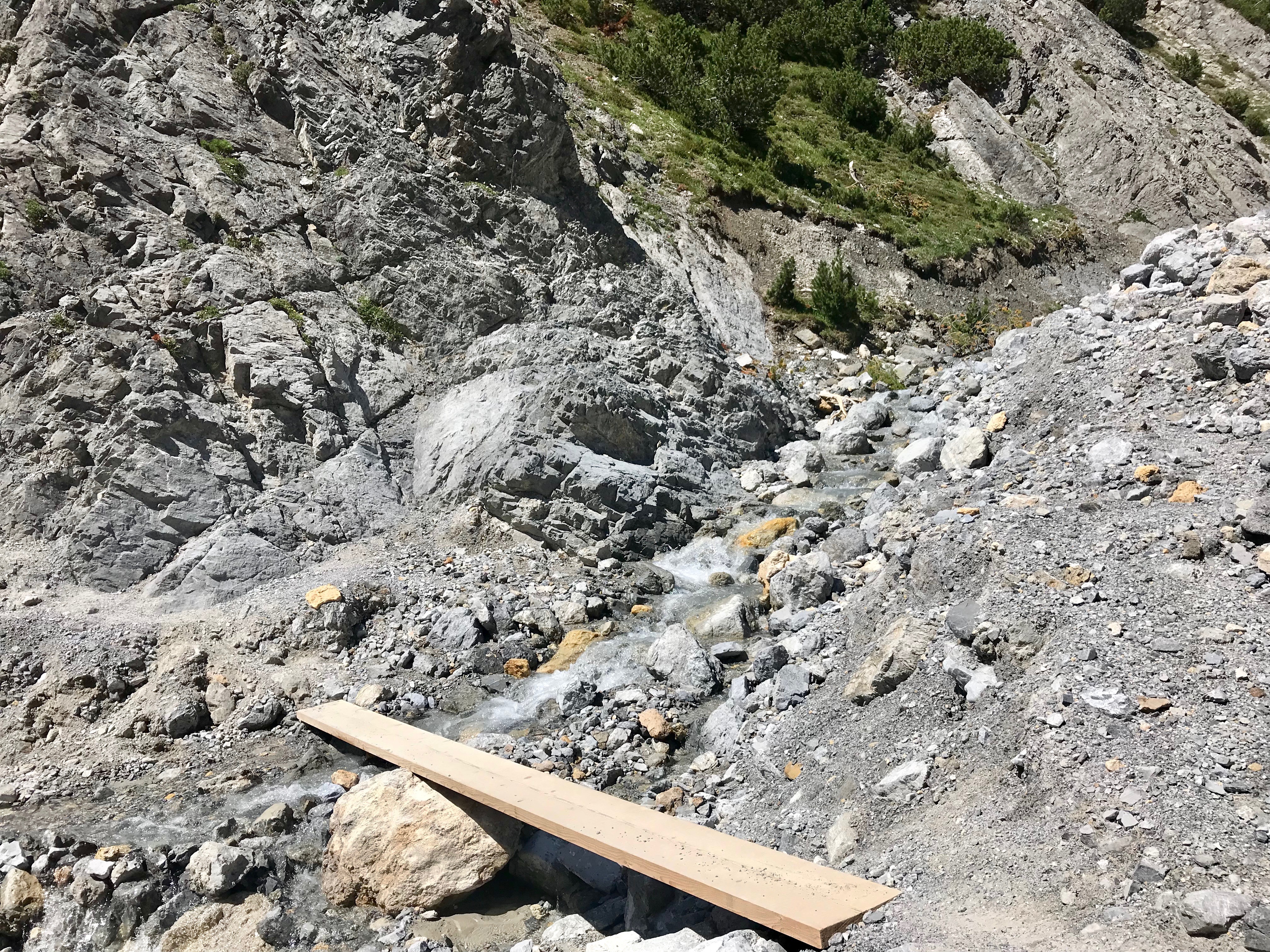 Nach dem ersten Teil des Aufstiegs kommt man am künstlichen Bartgeierhorst vorbei, wo zwischen 1991 und 2008 insgesamt 26 Bartgeier ausgesetzt wurden.