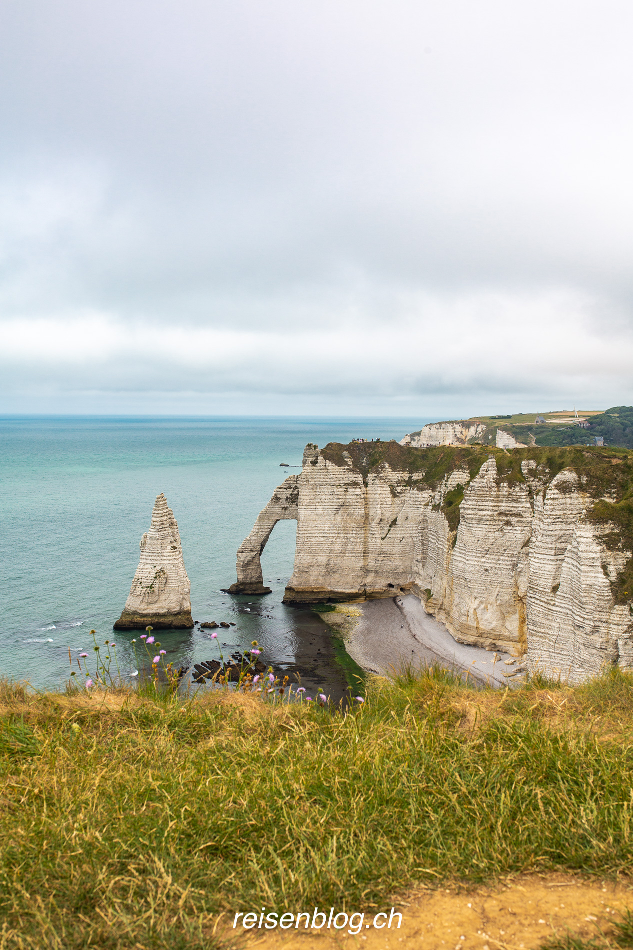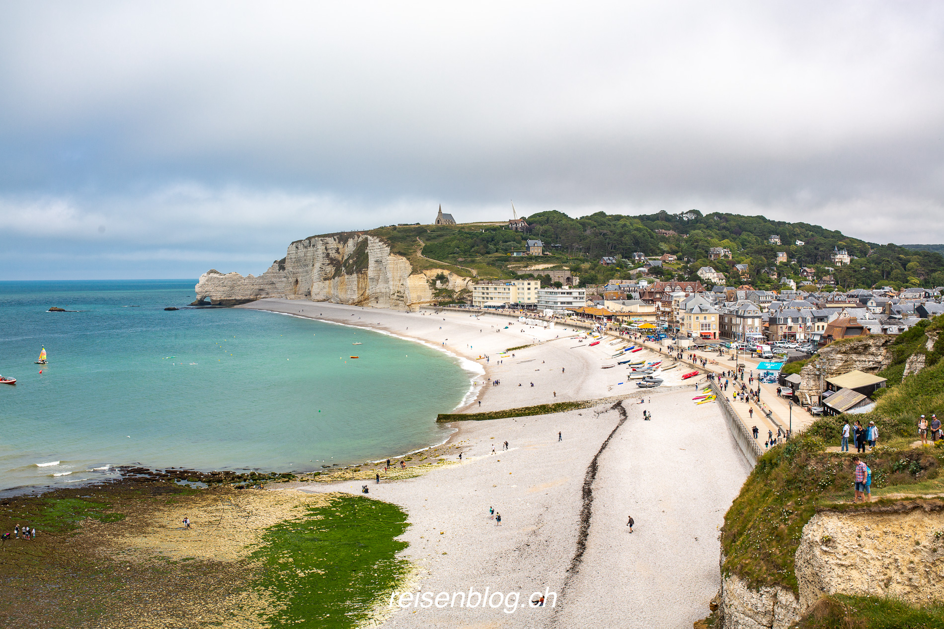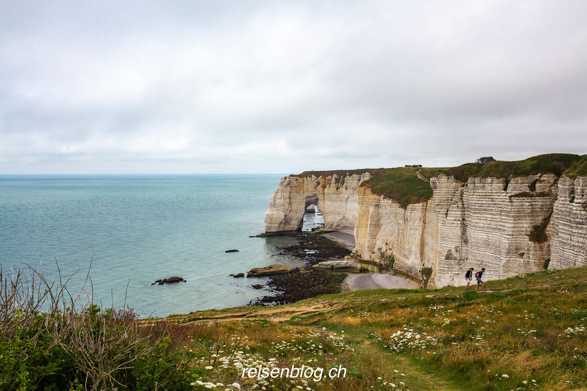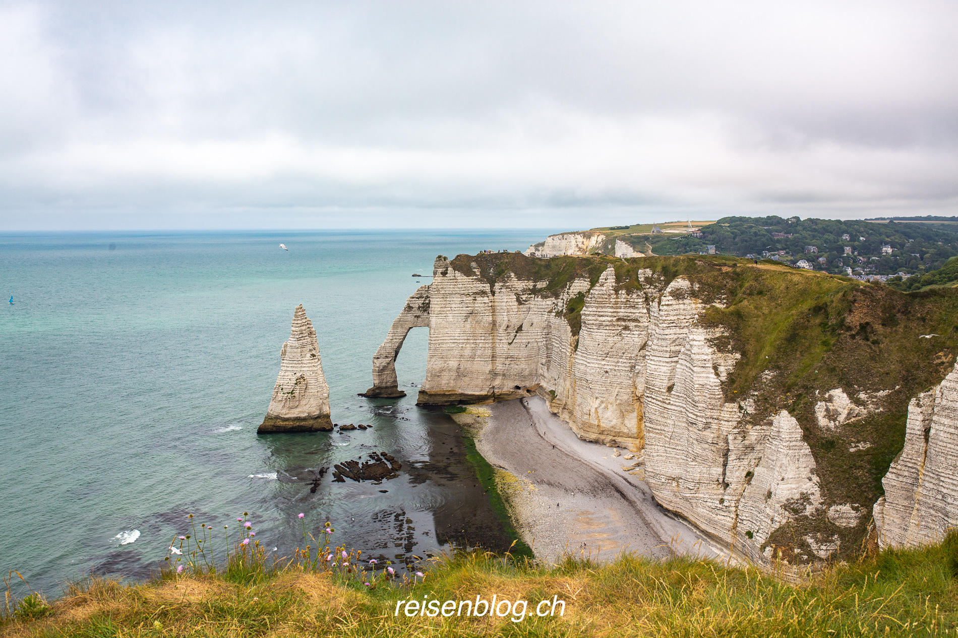 Auf unserer Tour mit WoMo und Hund in die Normandie machten wir drei bzw. vier auch einen Ausflug zu den Klippen und Felsformationen von Étretat.