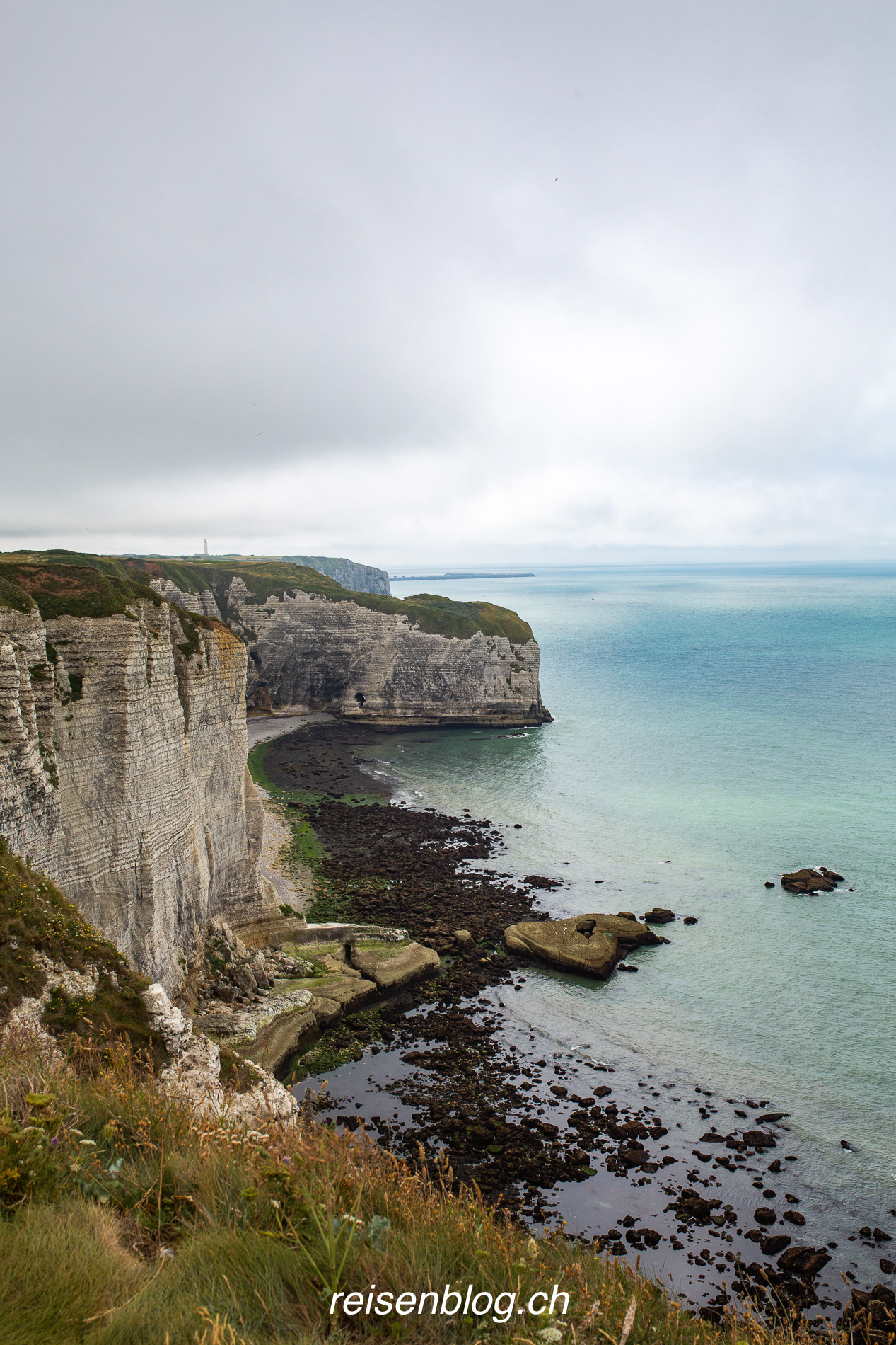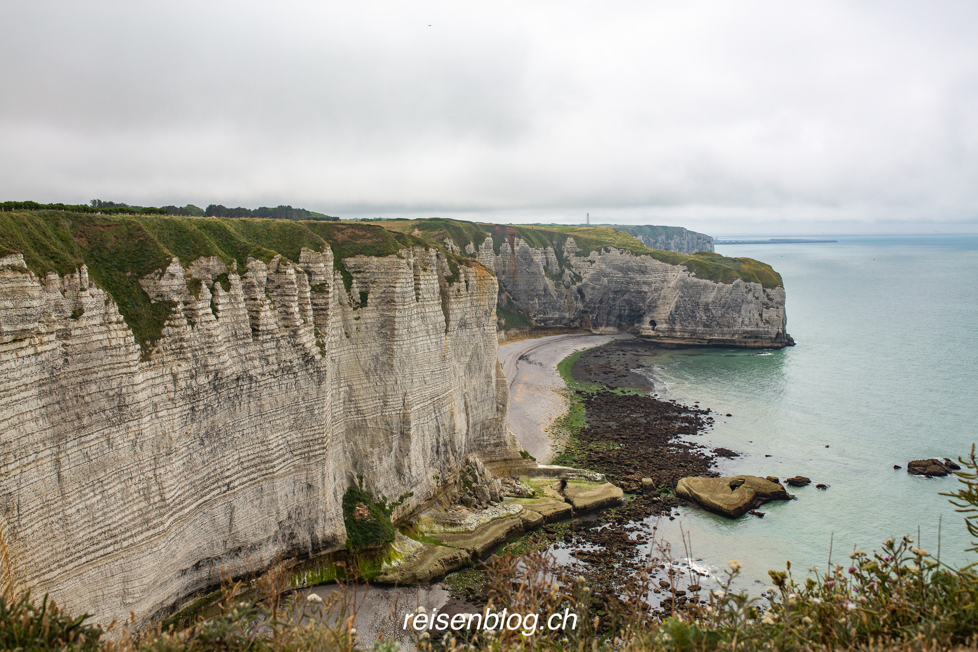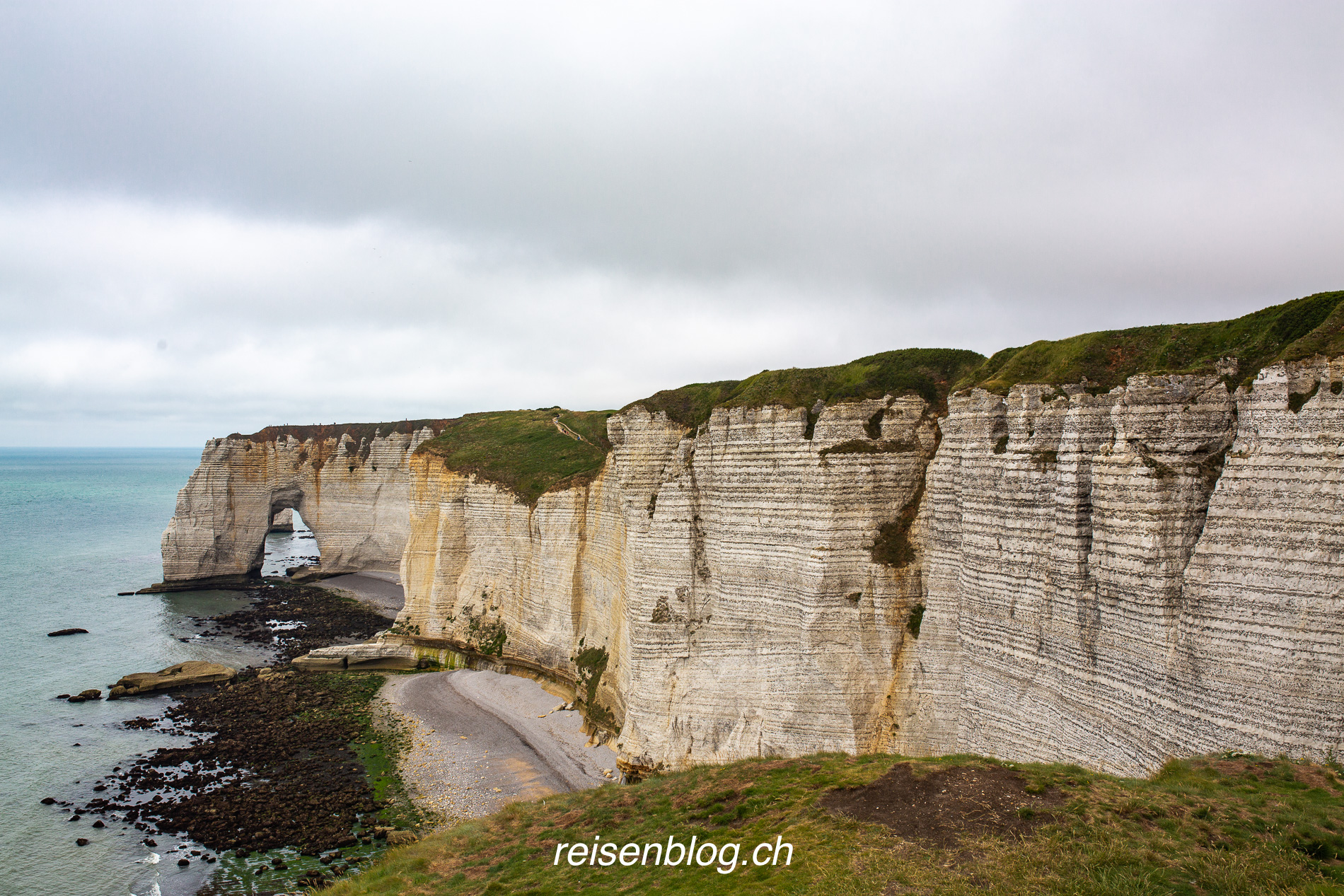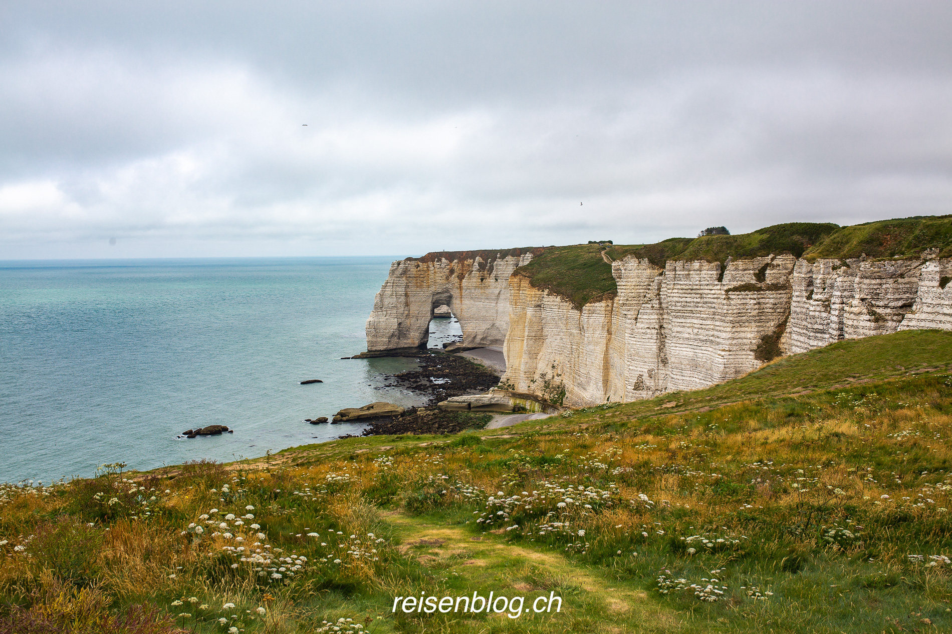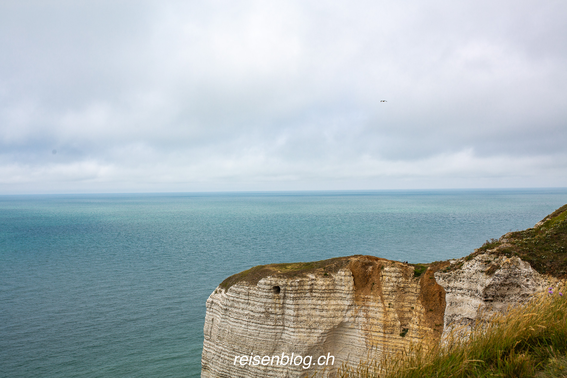Auf unserer Tour mit WoMo und Hund in die Normandie machten wir drei bzw. vier auch einen Ausflug zu den Klippen und Felsformationen von Étretat.