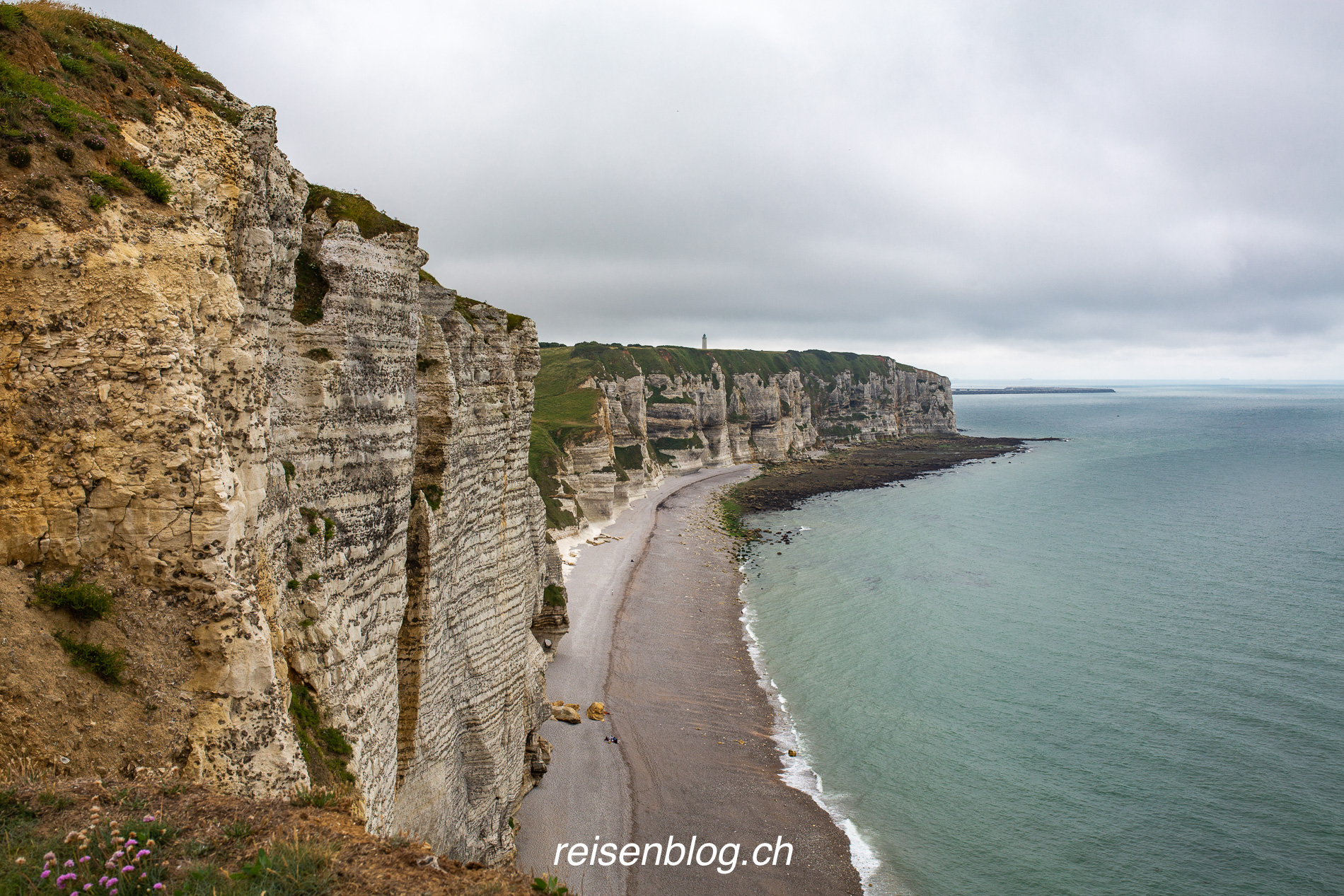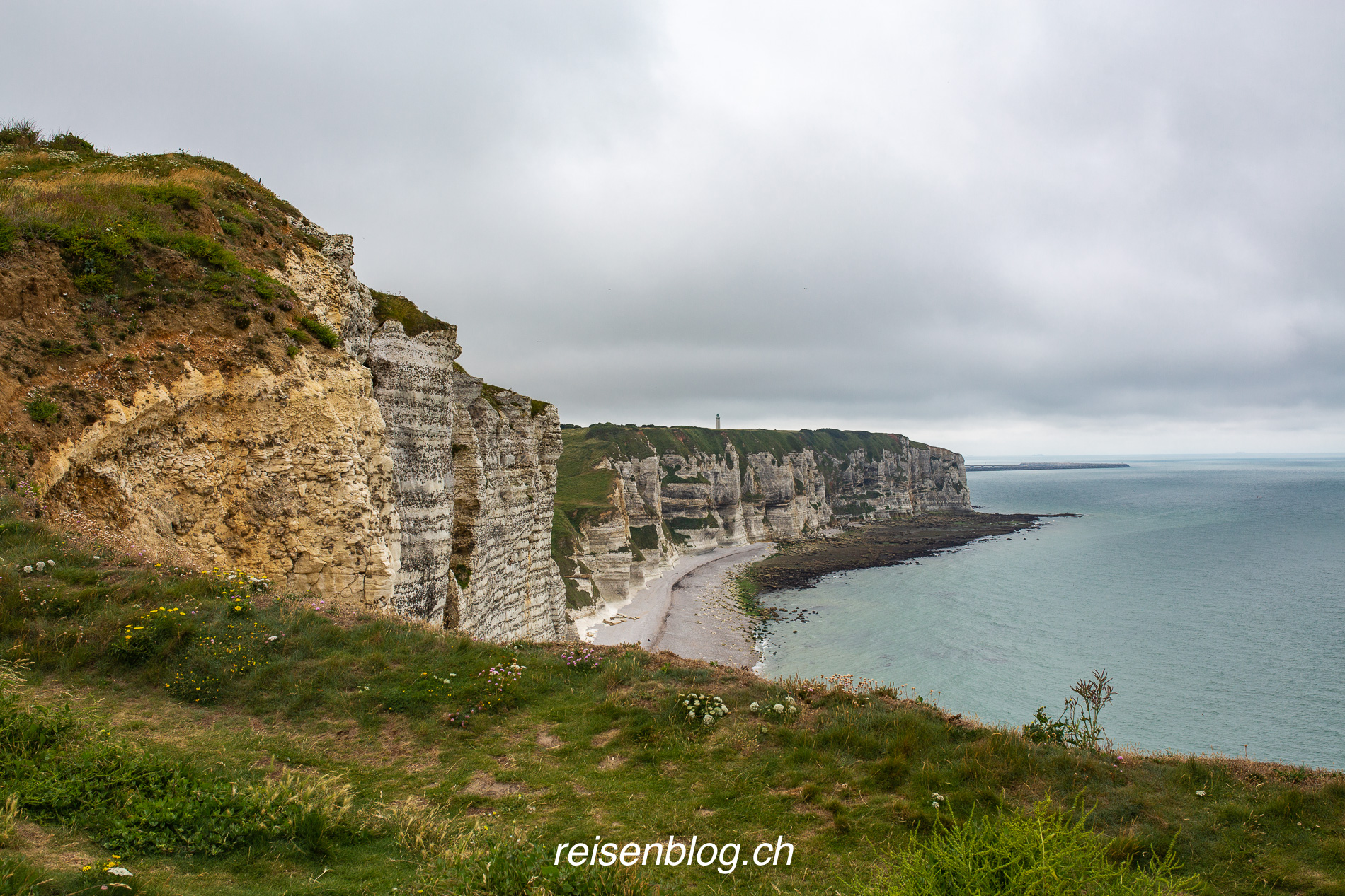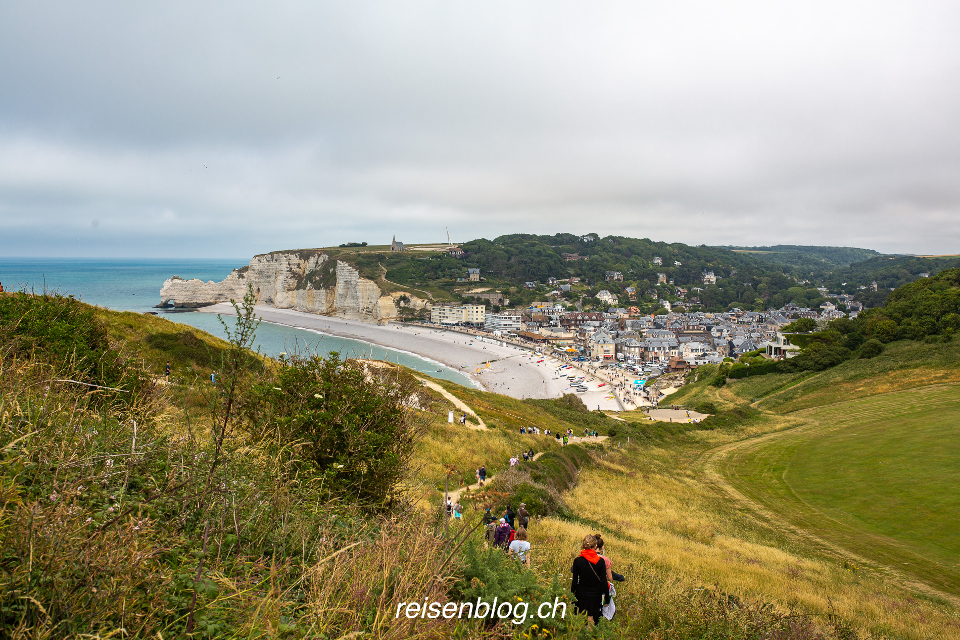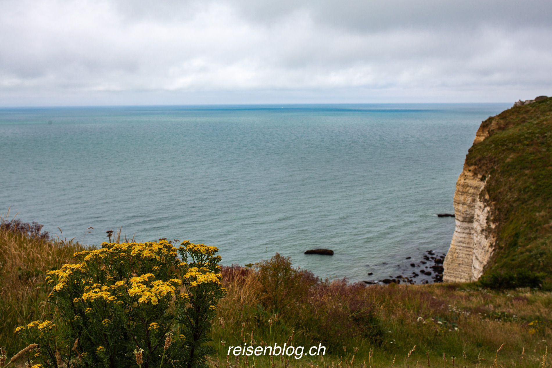 Auf unserer Tour mit WoMo und Hund in die Normandie machten wir drei bzw. vier auch einen Ausflug zu den Klippen und Felsformationen von Étretat.