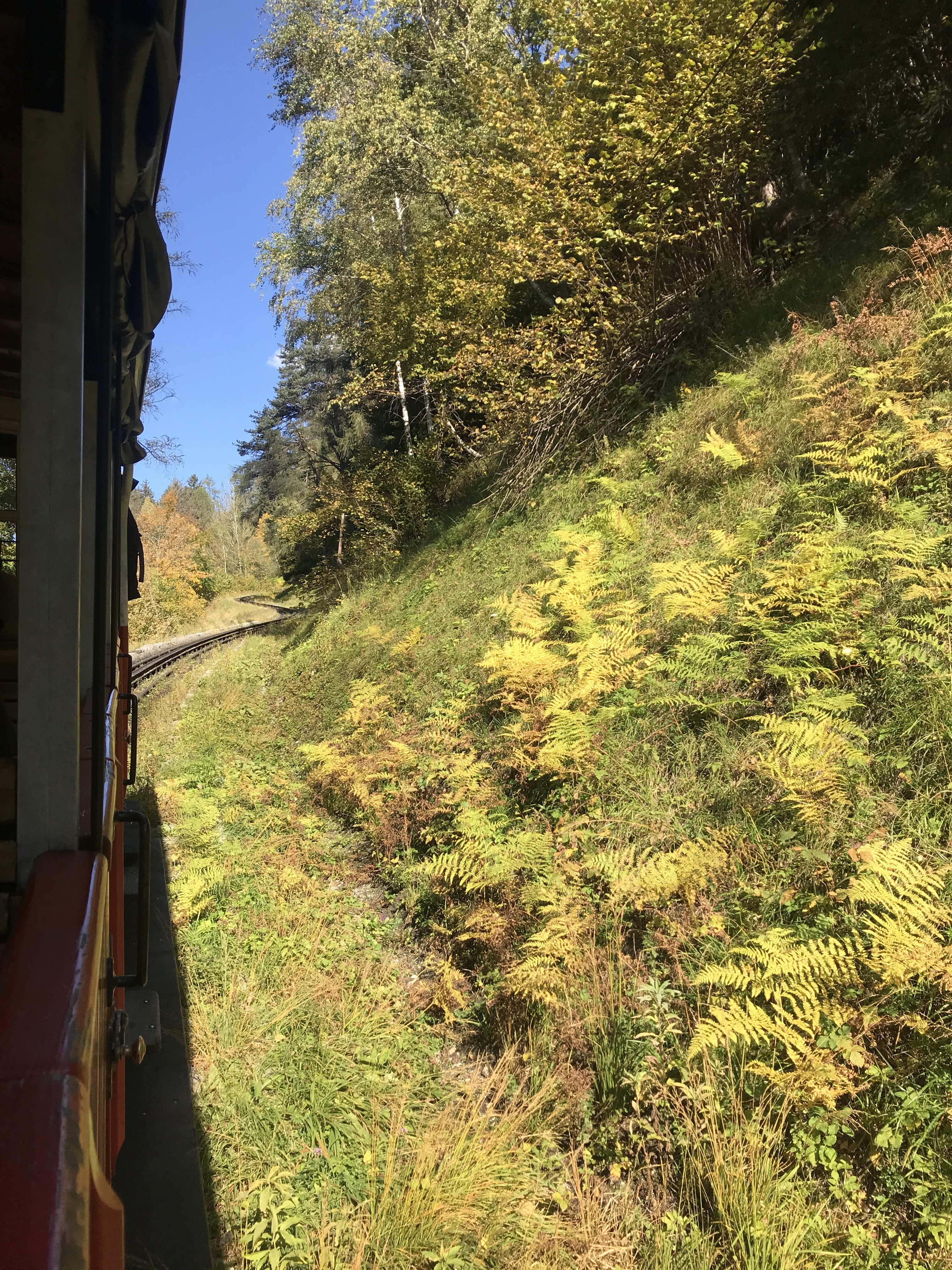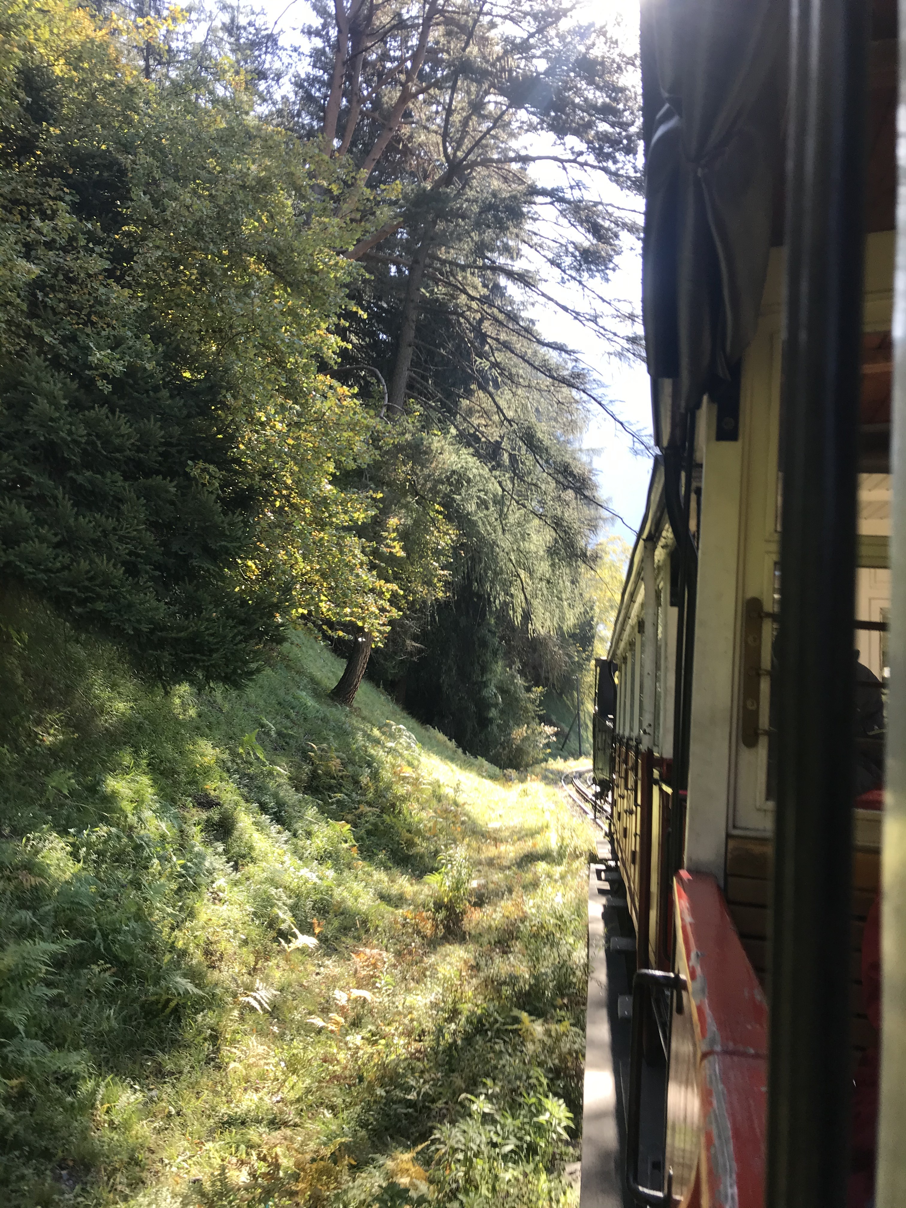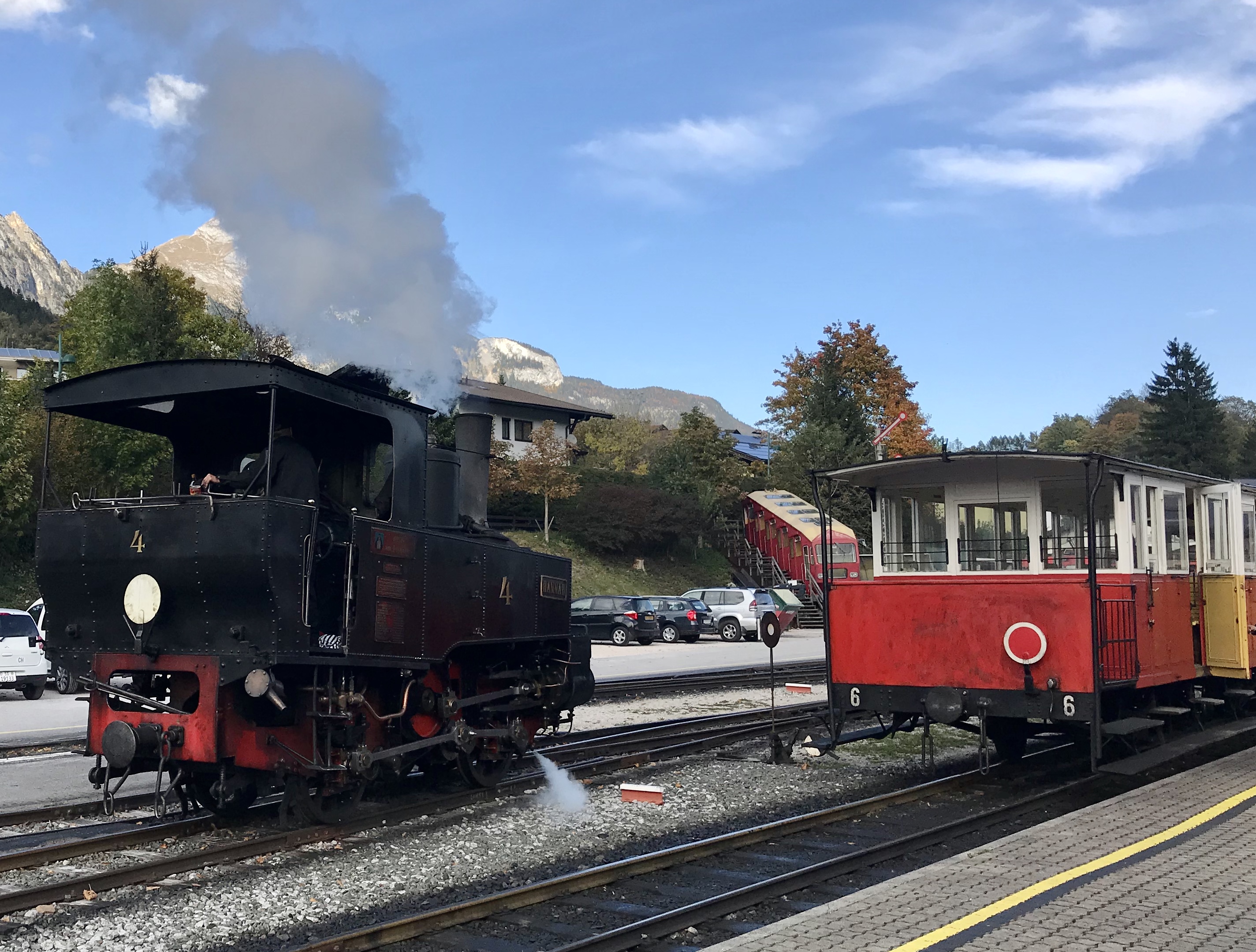 Nach einem zweistündigen Aufenthalt haben wir den Dampfzug bei der Einfahrt in Seespitz beobachtet. Am Seespitz umfährt die Dampflokomotive den Zug abermals und schiebt ihn in den Endbahnhof. Nach einer kurzen Pause bringt uns der Dampfzug auf einer gemütlichen Fahrt wieder hinunter ins Tal.